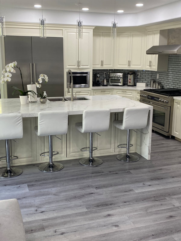 Calvados SPC flooring invites you to make a bold statement without ever saying a word. Do not let the cool-toned, multi-variant gray patterning fool you — Calvados flooring is the ultra-modern, endlessly chic design choice that some of the world’s most sophisticated interior designers are reaching for. The wide planks and subtle tonal variations throughout the flooring create the absolute perfect backdrop for any space — from living rooms to dining rooms, bathrooms to lounges, and absolutely everything in between. The understated gray tone of Calvados offers the ideal canvas for adventurous decoration and design, while also creating the perfect backdrop for a more demure and more modern look. Calvados SPC flooring elevates every space it enters, regardless of the design vision or direction. The ideal backdrop for brilliant white/light gray walls, black accents, and explosive pops of bright yellow to create an ultra-modern look, or the absolute perfect pairing for luxurious marble countertops, stainless steel appliances, and smooth cream or white cabinets for an incredibly chic kitchen — Calvados SPC flooring is the ultimate design choice.