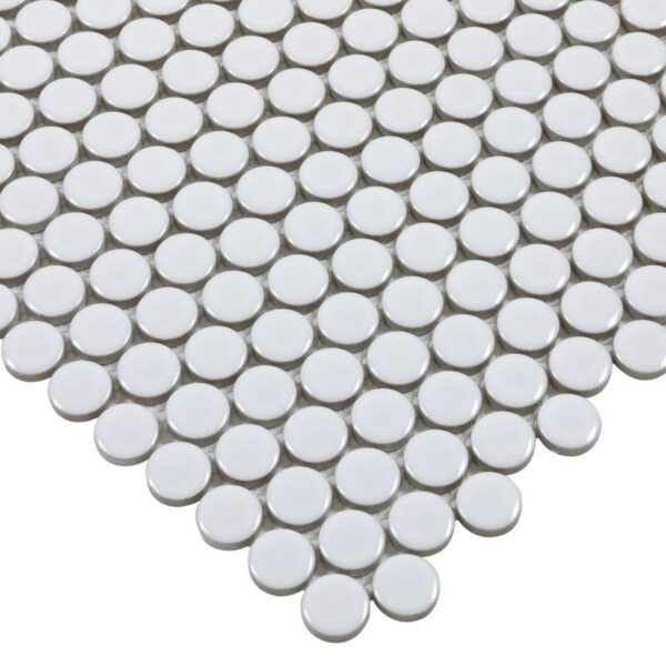 WHITE GLOSSY 3/4 INCH PENNY ROUND PORC MOS 12″x12″ -ANTHPOPRWG